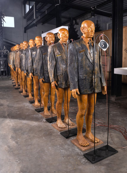 Entang Wiharso graduated from the Indonesian Institute of the Arts (Yogyakarta), maintains studios in both Java and the U.S. His life and family are bicultural, biracial, and inheritors of diverse religious and spiritual legacies. When the Sky is Falling is part of his work stemming from a 2019 Guggenheim fellowship. Wiharso’s multi-disciplinary practice speaks with urgency through many media: painting, sculpture, video, installations, and performance. His dramatic visual language is instantly recognizable with its unique depictions of contemporary life, and its relation to the mythologies of a centuries-old Javanese and animist past and the high-speed, hyper- connected lifestyle of the 21st century, layered with social, political and sexual critique, revealing a complex picture of the human condition.